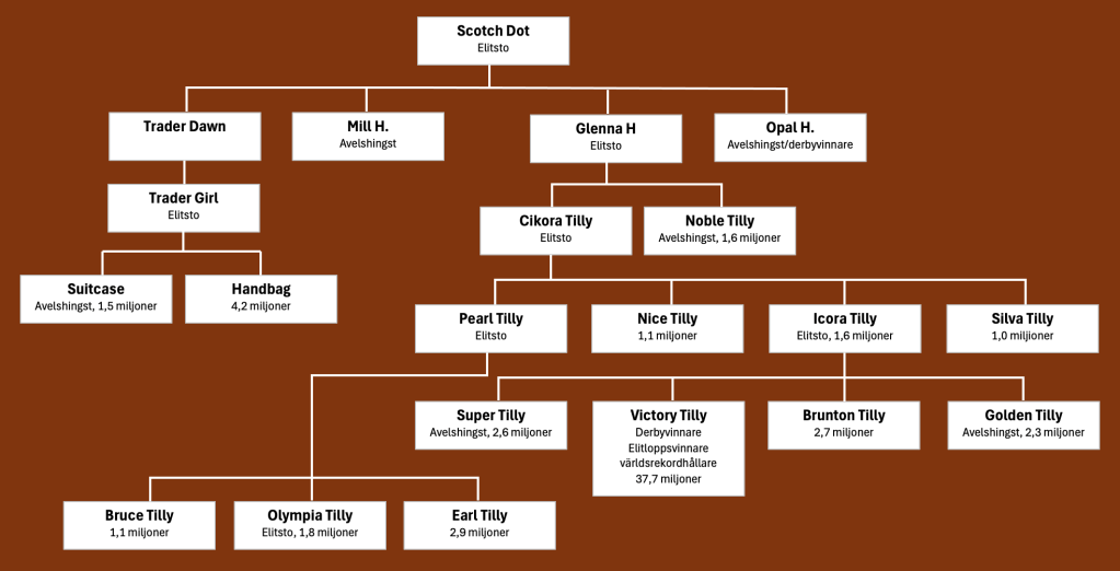 Glenna H-linjen representerar en unik mödernelinje med fem rakt nedstigande Elitston med Olympia Tilly som senast i raden (utnämnd 2024). Icora Tilly har gett oss den underbare tävlingsindividen och avelsgodkände hingsten Super Tilly, den magnifike Elitloppsvinnaren och världsrekordhållaren Victory Tilly samt miljonärerna Brunton Tilly och Golden Tilly. Glenna H har även lämnat avelshingsten Noble Tilly – även han miljonär – Sveriges förste Breeder’s Crown vinnare 1991. Under år 2015 utsågs även Pearl Tilly (Sharif di Iesolo-Cikora Tilly) i vår Glenna H-linje till Elitsto. År 2024 tilldelades även Olympia Tilly (efter Pearl Tilly) titeln Elitsto och blev därmed den 5:e generationen i rakt nedstigande led med Elitston i Sverige – unikt!